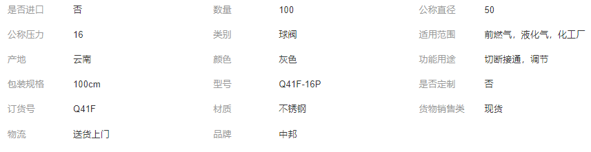 本网页所展示的有关【供应304高平台不锈钢法兰球阀 Q41F-16P DN50自控阀门按时发货_球阀_昆明市中邦经贸有限公司】的信息/图片/参数等由全球零部件网的会员【昆明市中邦经贸有限公司】提供,由全球零部件网会员【昆明市中邦经贸有限公司】自行对信息/图片/参数等的真实性、准确性和合法性负责,本平台(本网站)仅提供展示服务,请谨慎交易,因交易而产生的法律关系及法律纠纷由您自行协商解决,本平台(本网站)对此不承担任何责任。您在本网页可以浏览【供应304高平台不锈钢法兰球阀 Q41F-16P DN50自控阀门按时发货_球阀_昆明市中邦经贸有限公司】有关的信息/图片/价格等及提供【供应304高平台不锈钢法兰球阀 Q41F-16P DN50自控阀门按时发货_球阀_昆明市中邦经贸有限公司】的商家公司简介、联系方式等信息。