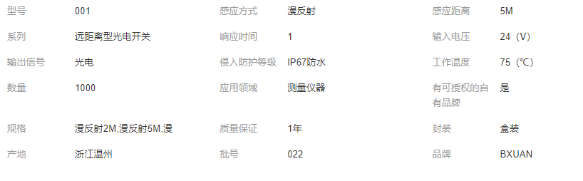 立即发布求购意向本网页所展示的有关【漫反射NPN光电开关传感器工程洗车机感应器远距离红外感应防水PNP_电子/开关/脉冲变压器_乐清彬炫电气有限公司】的信息/图片/参数等由全球零部件网的会员【乐清彬炫电气有限公司】提供,由全球零部件网会员【乐清彬炫电气有限公司】自行对信息/图片/参数等的真实性、准确性和合法性负责,本平台(本网站)仅提供展示服务,请谨慎交易,因交易而产生的法律关系及法律纠纷由您自行协商解决,本平台(本网站)对此不承担任何责任。您在本网页可以浏览【漫反射NPN光电开关传感器工程洗车机感应器远距离红外感应防水PNP_电子/开关/脉冲变压器_乐清彬炫电气有限公司】有关的信息/图片/价格等及提供【漫反射NPN光电开关传感器工程洗车机感应器远距离红外感应防水PNP_电子/开关/脉冲变压器_乐清彬炫电气有限公司】的商家公司简介、联系方式等信息。