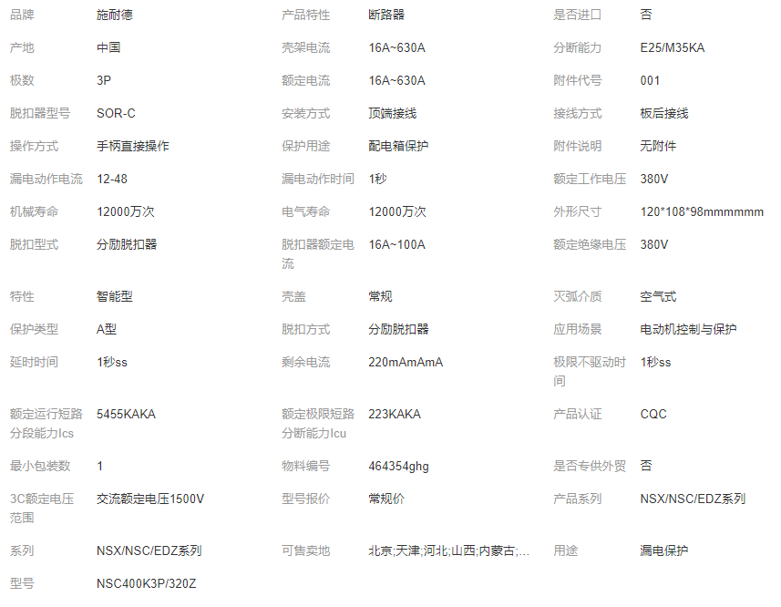 本网页所展示的有关【施耐德塑壳断路器NSC系列NSC400K 3P/320Z壳架电流400A/3P/4P_断路器_温州钰瑞电气有限公司】的信息/图片/参数等由全球零部件网的会员【温州钰瑞电气有限公司】提供,由全球零部件网会员【温州钰瑞电气有限公司】自行对信息/图片/参数等的真实性、准确性和合法性负责,本平台(本网站)仅提供展示服务,请谨慎交易,因交易而产生的法律关系及法律纠纷由您自行协商解决,本平台(本网站)对此不承担任何责任。您在本网页可以浏览【施耐德塑壳断路器NSC系列NSC400K 3P/320Z壳架电流400A/3P/4P_断路器_温州钰瑞电气有限公司】有关的信息/图片/价格等及提供【施耐德塑壳断路器NSC系列NSC400K 3P/320Z壳架电流400A/3P/4P_断路器_温州钰瑞电气有限公司】的商家公司简介、联系方式等信息。