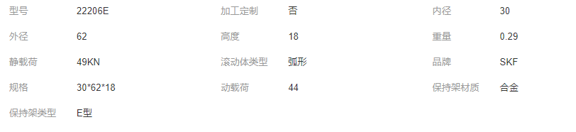 本网页所展示的有关【【SKF轴承 22206E 22206EK 22206EK/C3 22206E/C3 】保证原厂 全国包邮_轴承_无锡德瑞恒泰轴承有限公司】的信息/图片/参数等由全球零部件网的会员【无锡德瑞恒泰轴承有限公司】提供,由全球零部件网会员【无锡德瑞恒泰轴承有限公司】自行对信息/图片/参数等的真实性、准确性和合法性负责,本平台(本网站)仅提供展示服务,请谨慎交易,因交易而产生的法律关系及法律纠纷由您自行协商解决,本平台(本网站)对此不承担任何责任。您在本网页可以浏览【【SKF轴承 22206E 22206EK 22206EK/C3 22206E/C3 】保证原厂 全国包邮_轴承_无锡德瑞恒泰轴承有限公司】有关的信息/图片/价格等及提供【【SKF轴承 22206E 22206EK 22206EK/C3 22206E/C3 】保证原厂 全国包邮_轴承_无锡德瑞恒泰轴承有限公司】的商家公司简介、联系方式等信息。