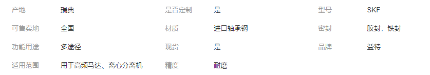 本网页所展示的有关【SKF轴承 耐高温防腐潜水排污泵 原装进口 高转速 低噪音_轴承_济南益特精密轴承有限公司】的信息/图片/参数等由全球零部件网的会员【济南益特精密轴承有限公司】提供,由全球零部件网会员【济南益特精密轴承有限公司】自行对信息/图片/参数等的真实性、准确性和合法性负责,本平台(本网站)仅提供展示服务,请谨慎交易,因交易而产生的法律关系及法律纠纷由您自行协商解决,本平台(本网站)对此不承担任何责任。您在本网页可以浏览【SKF轴承 耐高温防腐潜水排污泵 原装进口 高转速 低噪音_轴承_济南益特精密轴承有限公司】有关的信息/图片/价格等及提供【SKF轴承 耐高温防腐潜水排污泵 原装进口 高转速 低噪音_轴承_济南益特精密轴承有限公司】的商家公司简介、联系方式等信息。