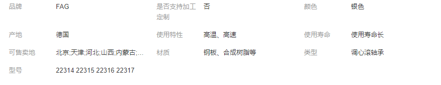 本网页所展示的有关【德国进口FAG调心滚子轴承 22314 22315 22316 22317 22318 22319 E1-XL_调心滚子轴承_济南益特精密轴承有限公司】的信息/图片/参数等由全球零部件网的会员【济南益特精密轴承有限公司】提供,由全球零部件网会员【济南益特精密轴承有限公司】自行对信息/图片/参数等的真实性、准确性和合法性负责,本平台(本网站)仅提供展示服务,请谨慎交易,因交易而产生的法律关系及法律纠纷由您自行协商解决,本平台(本网站)对此不承担任何责任。您在本网页可以浏览【德国进口FAG调心滚子轴承 22314 22315 22316 22317 22318 22319 E1-XL_调心滚子轴承_济南益特精密轴承有限公司】有关的信息/图片/价格等及提供【德国进口FAG调心滚子轴承 22314 22315 22316 22317 22318 22319 E1-XL_调心滚子轴承_济南益特精密轴承有限公司】的商家公司简介、联系方式等信息。