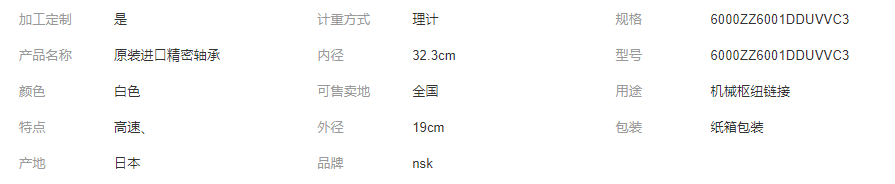 本网页所展示的有关【原装进口精密轴承 6000ZZ6001DDUVVC3 电机专用 高转速低噪音_轴承_上海科培轴承有限公司】的信息/图片/参数等由全球零部件网的会员【上海科培轴承有限公司】提供,由全球零部件网会员【上海科培轴承有限公司】自行对信息/图片/参数等的真实性、准确性和合法性负责,本平台(本网站)仅提供展示服务,请谨慎交易,因交易而产生的法律关系及法律纠纷由您自行协商解决,本平台(本网站)对此不承担任何责任。您在本网页可以浏览【原装进口精密轴承 6000ZZ6001DDUVVC3 电机专用 高转速低噪音_轴承_上海科培轴承有限公司】有关的信息/图片/价格等及提供【原装进口精密轴承 6000ZZ6001DDUVVC3 电机专用 高转速低噪音_轴承_上海科培轴承有限公司】的商家公司简介、联系方式等信息。