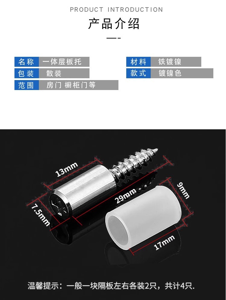 本网页所展示的有关【一体自攻螺丝层板托家具免打孔加厚固定橱衣鞋柜板销钉承重隔板粒_五金配件_广州猫亿五金建材有限公司】的信息/图片/参数等由全球零部件网的会员【广州猫亿五金建材有限公司】提供,由全球零部件网会员【广州猫亿五金建材有限公司】自行对信息/图片/参数等的真实性、准确性和合法性负责,本平台(本网站)仅提供展示服务,请谨慎交易,因交易而产生的法律关系及法律纠纷由您自行协商解决,本平台(本网站)对此不承担任何责任。您在本网页可以浏览【一体自攻螺丝层板托家具免打孔加厚固定橱衣鞋柜板销钉承重隔板粒_五金配件_广州猫亿五金建材有限公司】有关的信息/图片/价格等及提供【一体自攻螺丝层板托家具免打孔加厚固定橱衣鞋柜板销钉承重隔板粒_五金配件_广州猫亿五金建材有限公司】的商家公司简介、联系方式等信息。