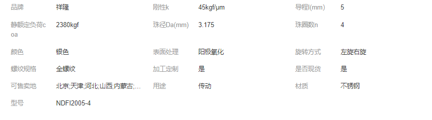 本网页所展示的有关【祥隆NDFI2005-4电子机械导螺杆寿命长 精密滚珠丝杠_五金配件_昆山方又圆精密五金机电有限公司】的信息/图片/参数等由全球零部件网的会员【昆山方又圆精密五金机电有限公司】提供,由全球零部件网会员【昆山方又圆精密五金机电有限公司】自行对信息/图片/参数等的真实性、准确性和合法性负责,本平台(本网站)仅提供展示服务,请谨慎交易,因交易而产生的法律关系及法律纠纷由您自行协商解决,本平台(本网站)对此不承担任何责任。您在本网页可以浏览【祥隆NDFI2005-4电子机械导螺杆寿命长 精密滚珠丝杠_五金配件_昆山方又圆精密五金机电有限公司】有关的信息/图片/价格等及提供【祥隆NDFI2005-4电子机械导螺杆寿命长 精密滚珠丝杠_五金配件_昆山方又圆精密五金机电有限公司】的商家公司简介、联系方式等信息。