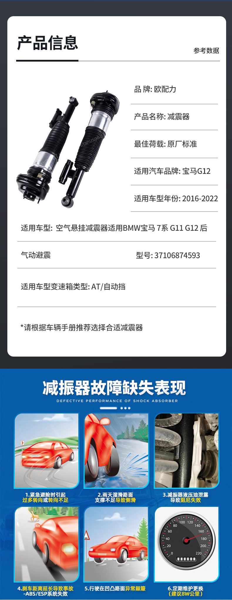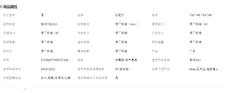 本网页所展示的有关【空气悬挂减震器适用BMW宝马 7系 G11 G12 后 气动避震37106874 593_减震器_佛山市宝尊驰汽车配件有限公司】的信息/图片/参数等由全球零部件网的会员【佛山市宝尊驰汽车配件有限公司】提供,由全球零部件网会员【佛山市宝尊驰汽车配件有限公司】自行对信息/图片/参数等的真实性、准确性和合法性负责,本平台(本网站)仅提供展示服务,请谨慎交易,因交易而产生的法律关系及法律纠纷由您自行协商解决,本平台(本网站)对此不承担任何责任。您在本网页可以浏览【空气悬挂减震器适用BMW宝马 7系 G11 G12 后 气动避震37106874 593_减震器_佛山市宝尊驰汽车配件有限公司】有关的信息/图片/价格等及提供【空气悬挂减震器适用BMW宝马 7系 G11 G12 后 气动避震37106874 593_减震器_佛山市宝尊驰汽车配件有限公司】的商家公司简介、联系方式等信息。