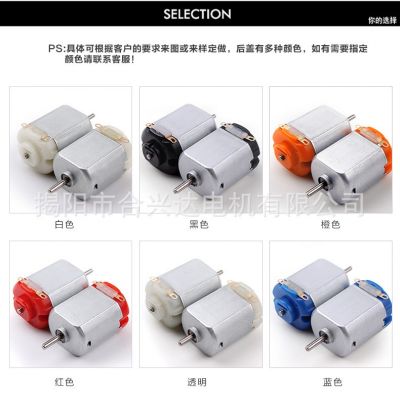 广东省揭阳市合兴达电机有限公司成立于2000年,是一家专业从事各类微电机,微型电机外壳、转子,直流微电机(马达),种类齐全,并可根据客户实际需要定制各款微型直流电机。大量供应n20、020、030、130、140、200、260、280 、360、365、370、380、385、540、545、550、555、1215系列直流微电机,产品广泛适用于电动玩具、按摩器、风筒等家用电器,以及电动工具、汽车配件等产品。本厂依靠优良的技术人才以先进的技术提供可靠、满足客户质量要求的微型马达产品,以人为本 ,持续改进,追求完好,不断进步,保持企业的生命力,以客户为关注焦点,不断满足并努力超越客户的需求。 在“合作发展、共同提高”的基础上,我们将以饱满的工作热情、创新的工作思维和务实的工作做法, 团结一致,奋勇拼搏,并与所有的合作伙伴共同发展,开拓双赢局面。
