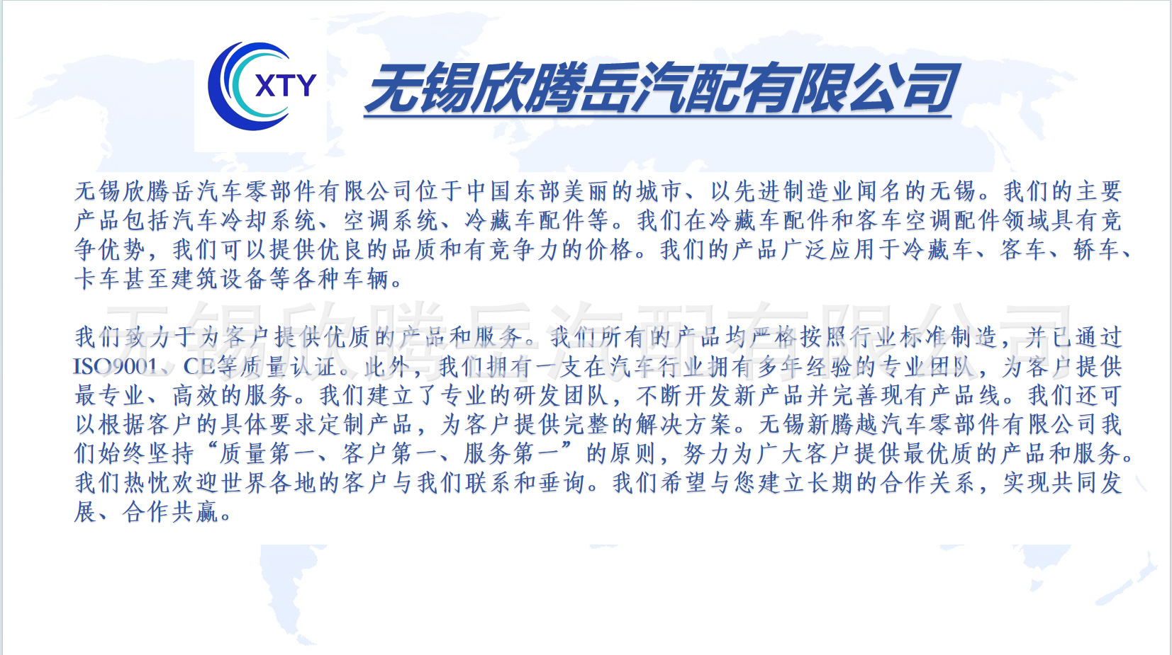 本网页所展示的有关【供应冷藏配件 73-00328-10避震管适用于Carrier开利系列冷藏车机_ HVAC汽车_无锡欣腾岳汽配有限公司】的信息/图片/参数等由全球零部件网的会员【无锡欣腾岳汽配有限公司】提供,由全球零部件网会员【无锡欣腾岳汽配有限公司】自行对信息/图片/参数等的真实性、准确性和合法性负责,本平台(本网站)仅提供展示服务,请谨慎交易,因交易而产生的法律关系及法律纠纷由您自行协商解决,本平台(本网站)对此不承担任何责任。您在本网页可以浏览【供应冷藏配件 73-00328-10避震管适用于Carrier开利系列冷藏车机_ HVAC汽车_无锡欣腾岳汽配有限公司】有关的信息/图片/价格等及提供【供应冷藏配件 73-00328-10避震管适用于Carrier开利系列冷藏车机_ HVAC汽车_无锡欣腾岳汽配有限公司】的商家公司简介、联系方式等信息。