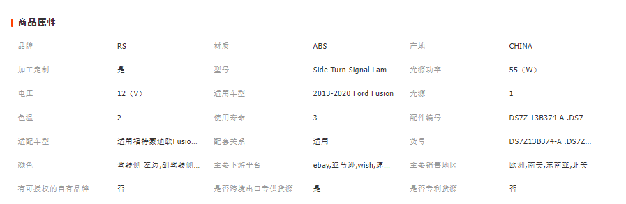 本网页所展示的有关【适用福特蒙迪欧Fusion美规13-20倒车镜后视镜转向灯信号灯侧边灯_ HVAC汽车_丹阳盛荣汽配有限公司】的信息/图片/参数等由全球零部件网的会员【丹阳盛荣汽配有限公司】提供,由全球零部件网会员【丹阳盛荣汽配有限公司】自行对信息/图片/参数等的真实性、准确性和合法性负责,本平台(本网站)仅提供展示服务,请谨慎交易,因交易而产生的法律关系及法律纠纷由您自行协商解决,本平台(本网站)对此不承担任何责任。您在本网页可以浏览【适用福特蒙迪欧Fusion美规13-20倒车镜后视镜转向灯信号灯侧边灯_ HVAC汽车_丹阳盛荣汽配有限公司】有关的信息/图片/价格等及提供【适用福特蒙迪欧Fusion美规13-20倒车镜后视镜转向灯信号灯侧边灯_ HVAC汽车_丹阳盛荣汽配有限公司】的商家公司简介、联系方式等信息。