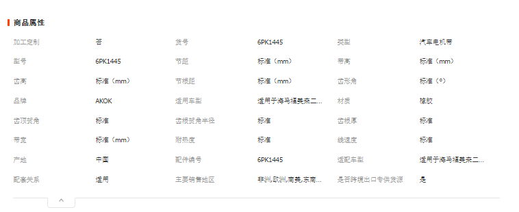 本网页所展示的有关【工厂直销汽车皮带6PK1445适用于海马福美来二代电机助力空调皮带_ HVAC汽车_广州爱备盛汽车零部件有限公司】的信息/图片/参数等由全球零部件网的会员【广州爱备盛汽车零部件有限公司】提供,由全球零部件网会员【广州爱备盛汽车零部件有限公司】自行对信息/图片/参数等的真实性、准确性和合法性负责,本平台(本网站)仅提供展示服务,请谨慎交易,因交易而产生的法律关系及法律纠纷由您自行协商解决,本平台(本网站)对此不承担任何责任。您在本网页可以浏览【工厂直销汽车皮带6PK1445适用于海马福美来二代电机助力空调皮带_ HVAC汽车_广州爱备盛汽车零部件有限公司】有关的信息/图片/价格等及提供【工厂直销汽车皮带6PK1445适用于海马福美来二代电机助力空调皮带_ HVAC汽车_广州爱备盛汽车零部件有限公司】的商家公司简介、联系方式等信息。