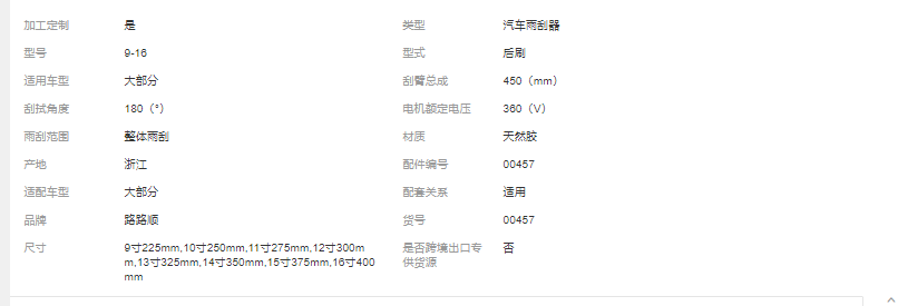 本网页所展示的有关【多功能后雨刮片雨刮器 汽车通用无骨雨刷器 有骨后雨刷器雨刷片_ HVAC汽车_清河县忠阳汽车零部件有限公司】的信息/图片/参数等由全球零部件网的会员【清河县忠阳汽车零部件有限公司】提供,由全球零部件网会员【清河县忠阳汽车零部件有限公司】自行对信息/图片/参数等的真实性、准确性和合法性负责,本平台(本网站)仅提供展示服务,请谨慎交易,因交易而产生的法律关系及法律纠纷由您自行协商解决,本平台(本网站)对此不承担任何责任。您在本网页可以浏览【多功能后雨刮片雨刮器 汽车通用无骨雨刷器 有骨后雨刷器雨刷片_ HVAC汽车_清河县忠阳汽车零部件有限公司】有关的信息/图片/价格等及提供【多功能后雨刮片雨刮器 汽车通用无骨雨刷器 有骨后雨刷器雨刷片_ HVAC汽车_清河县忠阳汽车零部件有限公司】的商家公司简介、联系方式等信息。
