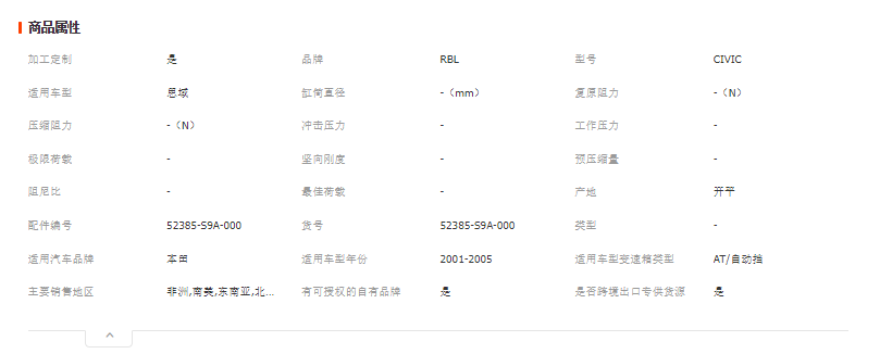本网页所展示的有关【厂家直销 52385-S9A-000 52371-S9A-A02 思域 后桥衬套_ HVAC汽车_开平市志杰汽车零部件有限公司】的信息/图片/参数等由全球零部件网的会员【开平市志杰汽车零部件有限公司】提供,由全球零部件网会员【开平市志杰汽车零部件有限公司】自行对信息/图片/参数等的真实性、准确性和合法性负责,本平台(本网站)仅提供展示服务,请谨慎交易,因交易而产生的法律关系及法律纠纷由您自行协商解决,本平台(本网站)对此不承担任何责任。您在本网页可以浏览【厂家直销 52385-S9A-000 52371-S9A-A02 思域 后桥衬套_ HVAC汽车_开平市志杰汽车零部件有限公司】有关的信息/图片/价格等及提供【厂家直销 52385-S9A-000 52371-S9A-A02 思域 后桥衬套_ HVAC汽车_开平市志杰汽车零部件有限公司】的商家公司简介、联系方式等信息。