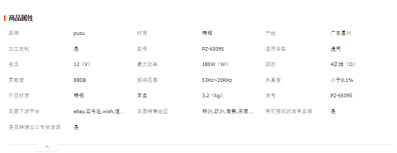 本网页所展示的有关【美国PUZU彪族6.5寸玻纤音盆汽车音响两分频套装喇叭180W输出功率_ HVAC汽车_惠州市尚水科技有限公司】的信息/图片/参数等由全球零部件网的会员【惠州市尚水科技有限公司】提供,由全球零部件网会员【惠州市尚水科技有限公司】自行对信息/图片/参数等的真实性、准确性和合法性负责,本平台(本网站)仅提供展示服务,请谨慎交易,因交易而产生的法律关系及法律纠纷由您自行协商解决,本平台(本网站)对此不承担任何责任。您在本网页可以浏览【美国PUZU彪族6.5寸玻纤音盆汽车音响两分频套装喇叭180W输出功率_ HVAC汽车_惠州市尚水科技有限公司】有关的信息/图片/价格等及提供【美国PUZU彪族6.5寸玻纤音盆汽车音响两分频套装喇叭180W输出功率_ HVAC汽车_惠州市尚水科技有限公司】的商家公司简介、联系方式等信息。
