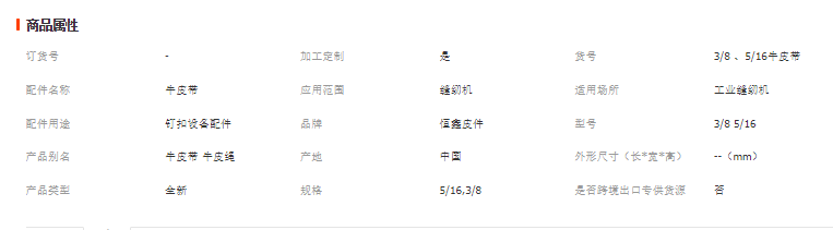 本网页所展示的有关【工业圆轮带 工业缝纫机牛皮带 3/8 5/16钉扣机传动带耐磨扁皮绳_五金配件_项城市恒鑫皮件有限公司】的信息/图片/参数等由全球零部件网的会员【项城市恒鑫皮件有限公司】提供,由全球零部件网会员【项城市恒鑫皮件有限公司】自行对信息/图片/参数等的真实性、准确性和合法性负责,本平台(本网站)仅提供展示服务,请谨慎交易,因交易而产生的法律关系及法律纠纷由您自行协商解决,本平台(本网站)对此不承担任何责任。您在本网页可以浏览【工业圆轮带 工业缝纫机牛皮带 3/8 5/16钉扣机传动带耐磨扁皮绳_五金配件_项城市恒鑫皮件有限公司】有关的信息/图片/价格等及提供【工业圆轮带 工业缝纫机牛皮带 3/8 5/16钉扣机传动带耐磨扁皮绳_五金配件_项城市恒鑫皮件有限公司】的商家公司简介、联系方式等信息。