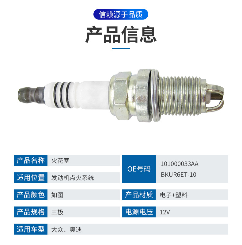 本网页所展示的有关【厂家直销适用于大众/奥迪 汽车火花塞配件101000033AA BKUR6ET-10_火花塞_广州市荣达汽车配件有限公司】的信息/图片/参数等由全球零部件网的会员【广州市荣达汽车配件有限公司】提供,由全球零部件网会员【广州市荣达汽车配件有限公司】自行对信息/图片/参数等的真实性、准确性和合法性负责,本平台(本网站)仅提供展示服务,请谨慎交易,因交易而产生的法律关系及法律纠纷由您自行协商解决,本平台(本网站)对此不承担任何责任。您在本网页可以浏览【厂家直销适用于大众/奥迪 汽车火花塞配件101000033AA BKUR6ET-10_火花塞_广州市荣达汽车配件有限公司】有关的信息/图片/价格等及提供【厂家直销适用于大众/奥迪 汽车火花塞配件101000033AA BKUR6ET-10_火花塞_广州市荣达汽车配件有限公司】的商家公司简介、联系方式等信息。