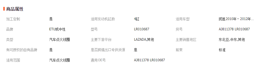 本网页所展示的有关【适用路虎发现4 运动版揽胜 点火线圈 AJ811378 LR010687_点火线圈_广东意途工业有限公司】的信息/图片/参数等由全球零部件网的会员【广东意途工业有限公司】提供,由全球零部件网会员【广东意途工业有限公司】自行对信息/图片/参数等的真实性、准确性和合法性负责,本平台(本网站)仅提供展示服务,请谨慎交易,因交易而产生的法律关系及法律纠纷由您自行协商解决,本平台(本网站)对此不承担任何责任。您在本网页可以浏览【适用路虎发现4 运动版揽胜 点火线圈 AJ811378 LR010687_点火线圈_广东意途工业有限公司】有关的信息/图片/价格等及提供【适用路虎发现4 运动版揽胜 点火线圈 AJ811378 LR010687_点火线圈_广东意途工业有限公司】的商家公司简介、联系方式等信息。