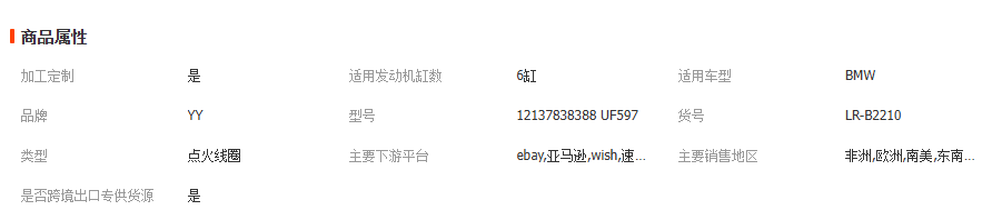本网页所展示的有关【跨境适用宝马M34.0E92E92S65 12137838388 UF597点火线圈高压包_点火线圈_武汉市江岸区钰壹电子商务经营部】的信息/图片/参数等由全球零部件网的会员【武汉市江岸区钰壹电子商务经营部】提供,由全球零部件网会员【武汉市江岸区钰壹电子商务经营部】自行对信息/图片/参数等的真实性、准确性和合法性负责,本平台(本网站)仅提供展示服务,请谨慎交易,因交易而产生的法律关系及法律纠纷由您自行协商解决,本平台(本网站)对此不承担任何责任。您在本网页可以浏览【跨境适用宝马M34.0E92E92S65 12137838388 UF597点火线圈高压包_点火线圈_武汉市江岸区钰壹电子商务经营部】有关的信息/图片/价格等及提供【跨境适用宝马M34.0E92E92S65 12137838388 UF597点火线圈高压包_点火线圈_武汉市江岸区钰壹电子商务经营部】的商家公司简介、联系方式等信息。