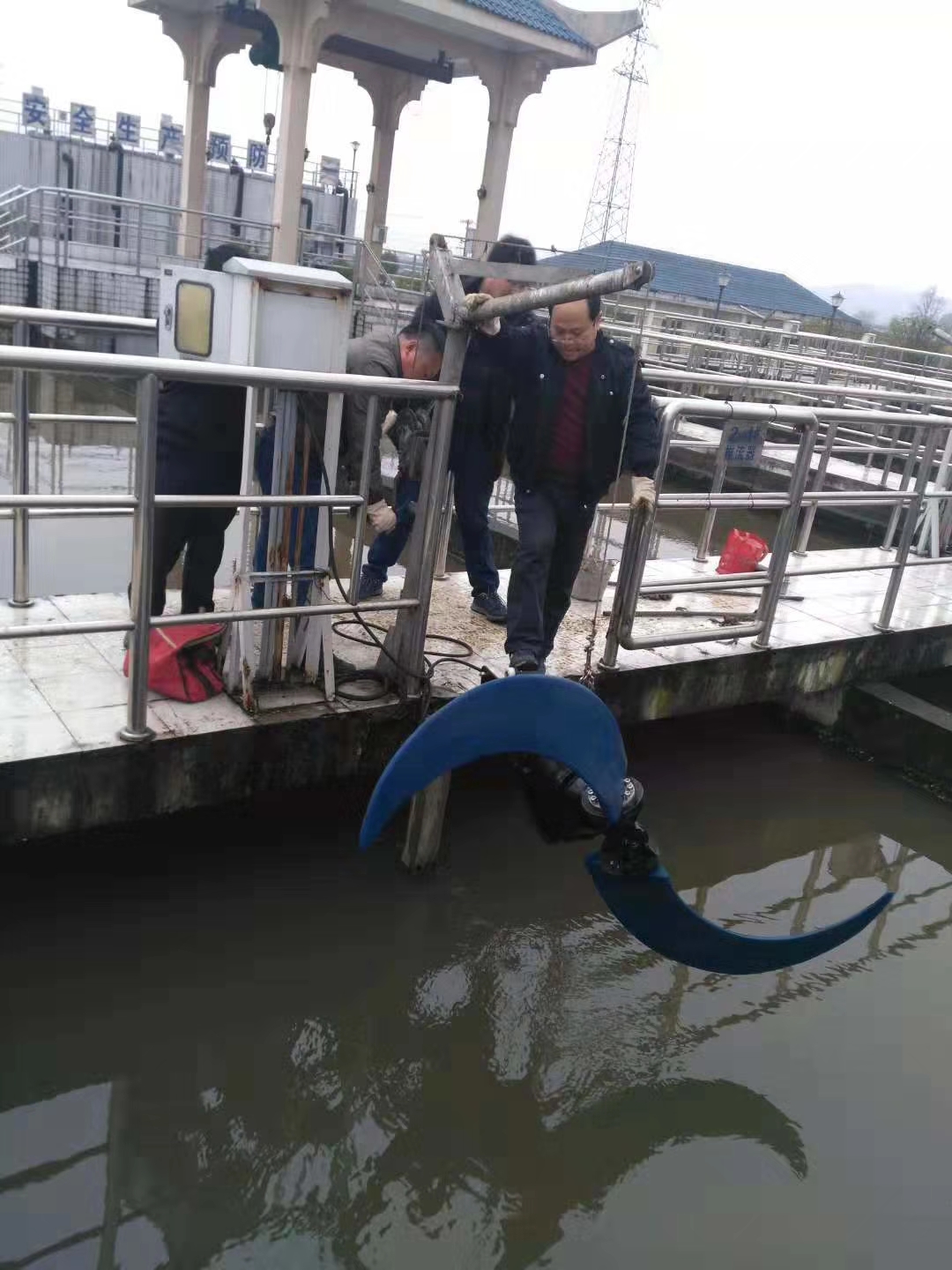 潜水推流器电机是潜水式,水平安装的,全铜线圈电机,齿轮箱减速机。推流器可上下升降,方便的移动,且可以方便地卸下进行检查或服务,而无需人员进入池子或井中。