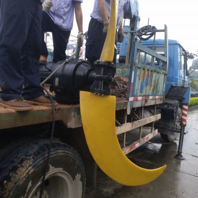 江苏杜安环保潜水推流器安装系统主要由手拉葫芦、起吊架、吊架座、起吊环链、导杆、限位架、底座等组成。低速推流器通过导轮沿导杆上下移动,起吊架安装在起吊架座上并可绕其定位轴线旋转360°,以方便安装及维护本安装系统的限位架为“T”子形,上端与低速推流器体接触,横向用螺栓与导杆联板联接(导杆联板待低速推流器位置调整正确后焊在导杆上),下端用膨胀螺栓固定。为增加低速推流器运行时的可靠性,减缓潜低速推流器运行中的振动,在低速推流器与限位架加设V形橡胶减震块。QJB低速推流器的安装系统材质采用不锈钢304、不锈钢316和碳钢防腐供选择;