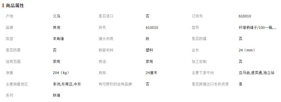 本网页所展示的有关【源头厂家羊角锤起钉锤木工家用锤子高碳钢小铁锤榔头批发_锤子类_义乌市扫罗电子商务商行】的信息/图片/参数等由全球零部件网的会员【义乌市扫罗电子商务商行】提供,由全球零部件网会员【义乌市扫罗电子商务商行】自行对信息/图片/参数等的真实性、准确性和合法性负责,本平台(本网站)仅提供展示服务,请谨慎交易,因交易而产生的法律关系及法律纠纷由您自行协商解决,本平台(本网站)对此不承担任何责任。您在本网页可以浏览【源头厂家羊角锤起钉锤木工家用锤子高碳钢小铁锤榔头批发_锤子类_义乌市扫罗电子商务商行】有关的信息/图片/价格等及提供【源头厂家羊角锤起钉锤木工家用锤子高碳钢小铁锤榔头批发_锤子类_义乌市扫罗电子商务商行】的商家公司简介、联系方式等信息。